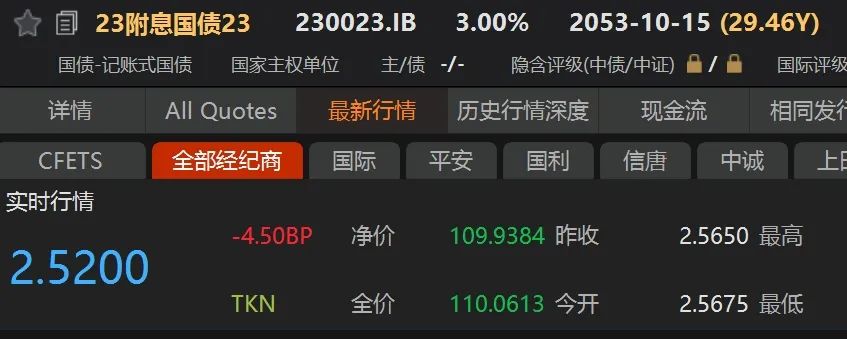 而更长久期的30年期国债收益率回调幅度更大,最新收益率上行至2.56%附近。其中,30年期国债活跃券“23附息国债23”最高一度上行至2.61%,较4月23日的2.4%上行超20个基点。该长期债券的收益率自3月8日以来,较长时间维持在2.5%以下。